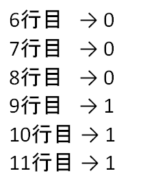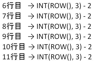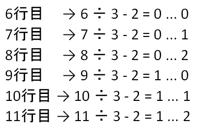 行番号が重要になります。各行の行番号と、求めたい数値の関係は次のようになります。