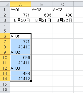 - まず、表の縦横を変換します。元の表を選択してコピーします