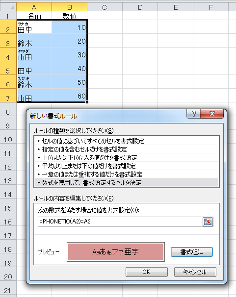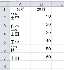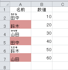 - セルに入力されている文字列と等しかったら → フリガナが設定されていない