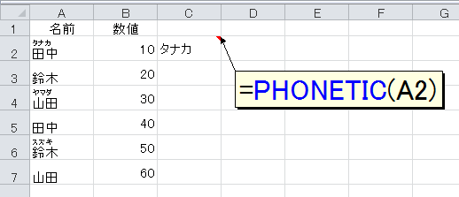 PHONETIC関数は、セルに設定されているフリガナを返す関数です。