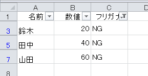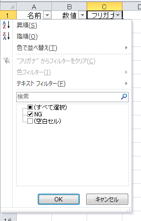 あとは、オートフィルタで、"NG"のセルだけ絞り込めばいいです。