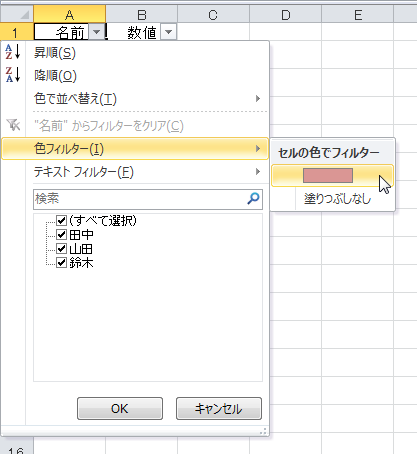 ちなみに、Excel 2007以降でしたら、色による並べ替えや絞り込みが可能になりましたので、次のようにすることもできますね。