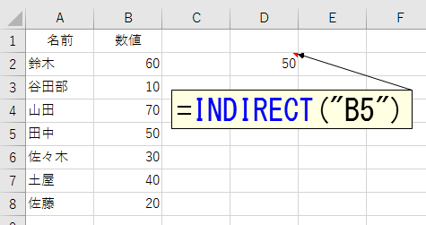 INDIRECT関数は、文字列として指定したアドレスを参照する関数です。