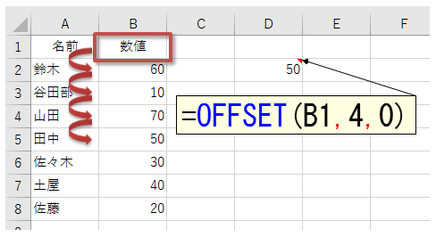 OFFSET(B1,4,0) の「4」は、セルB1から