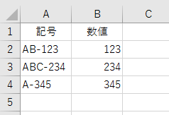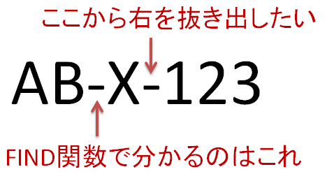 次のようなデータで、ハイフン(-)から右側を抜き出すには、次のように考えます。