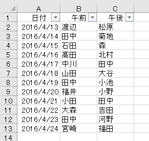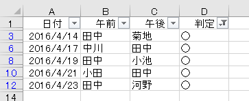 または(OR)C列の「午後」が"田中"である、という絞り込みはできません。