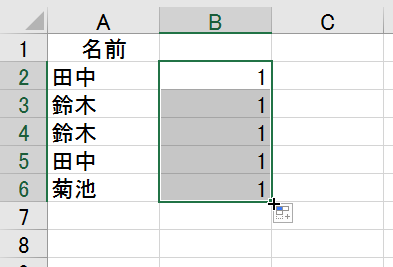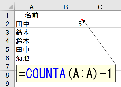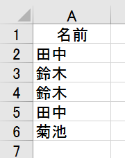 上図のようなデータがあったとします。説明するまでもありませんが、名前の総数は 5 件ですが、"田中"と"鈴木"が