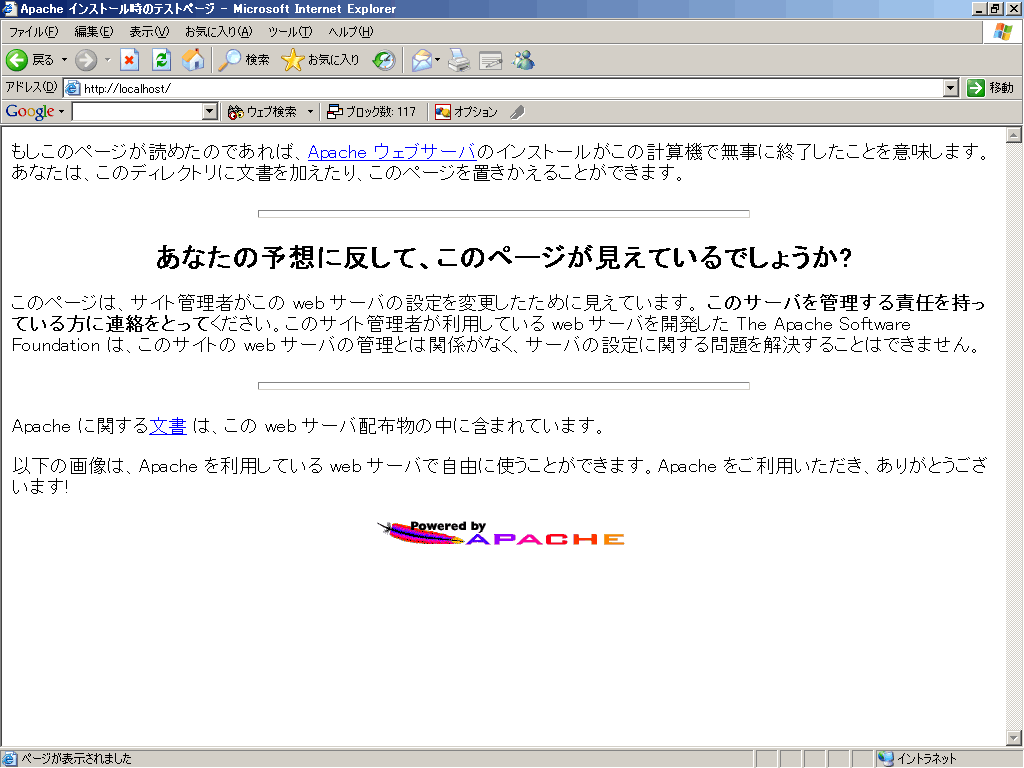 ブラウザを起動して「http://localhost/」とタイプしてEnterキーを押す。