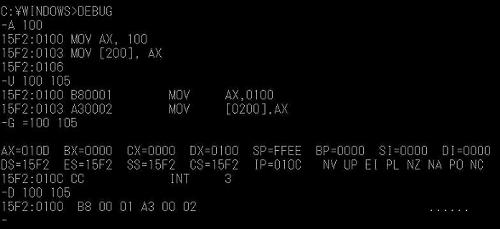 15F2:0100 B8FF00 MOV AX,00FF