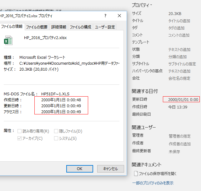 - ファイルをいったん保存した閉じた後に、開いてプロパティを確認します。