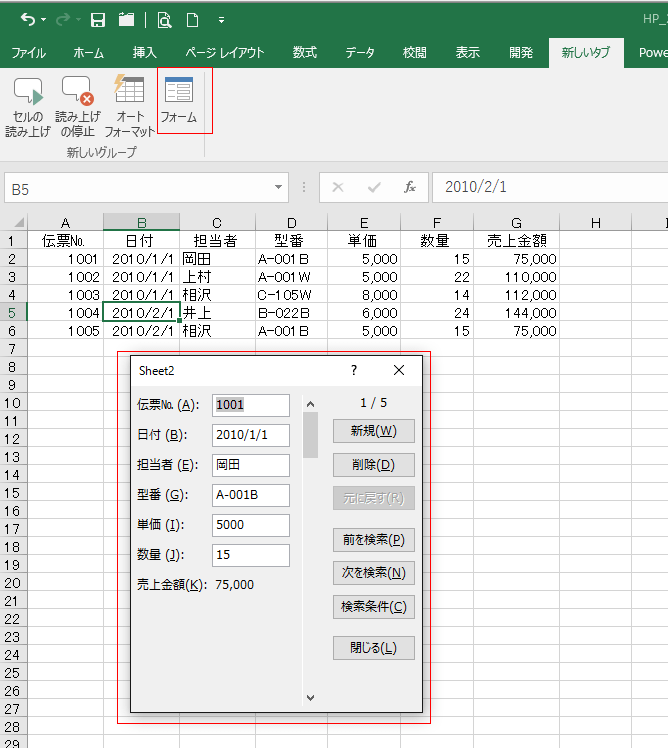 Home|エクセルの使い方の目次|データの入力|フォーム機能を利用して入力する