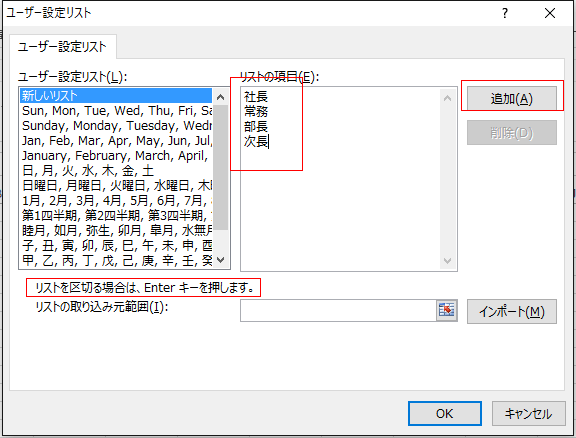 ユーザー設定のリストを使って連続データを入力する Topへ