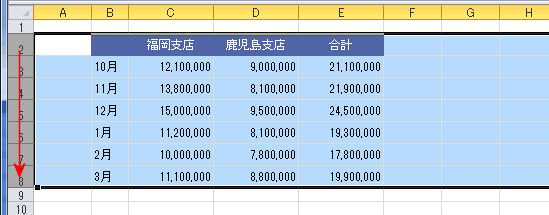 - 3:9行をドラッグして選択します。
