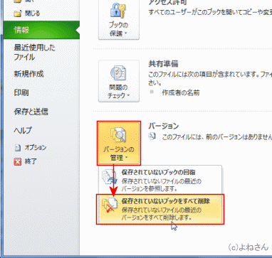 よねさんのExcelとWordの使い方|エクセル2010基本講座:目次|Excel(エクセル)のバックステージ ビューの使い方|バージョンの管理