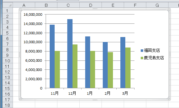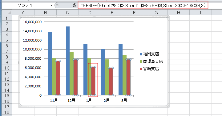 - グラフの系列を選択して、数式バーで確認することもできます。