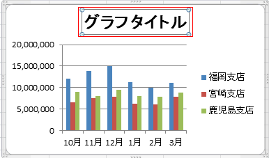 - グラフタイトルを選択します。 (枠が直線表示されている状態です)