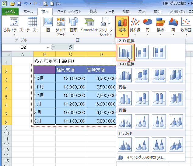 よねさんのExcelとWordの使い方|エクセル2010基本講座:目次|グラフの使い方|縦棒グラフの作成