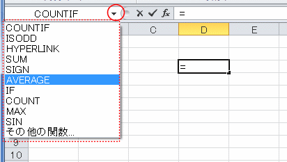 - セルに「=(イコール)」を入力すると、名前ボックスに直前に使用した関数が表示されます。