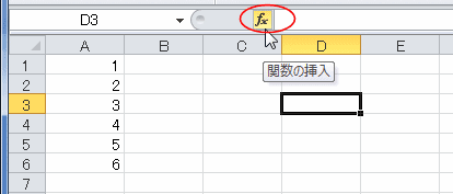 - 数式バーの[関数の挿入]ボタンをクリックします。