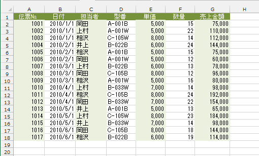 なお、ここの例ではデータが入力された状態ですが、未入力の範囲を指定してもかまいません。