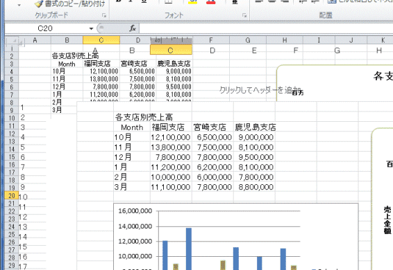 エクセル2010基本講座:ページレイアウトビューでシートの一部が切り取られて重なったように表示されたり、表示がおかしい?