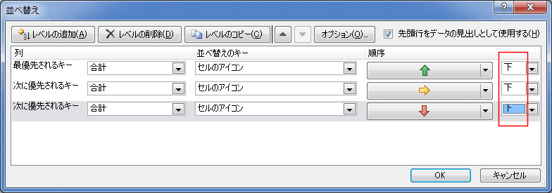- Excel2007以降ではセルのアイコンによる並べ替えができるようになっています。