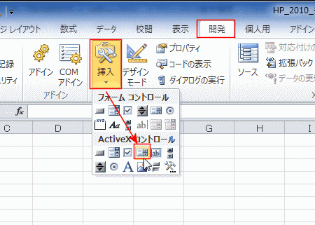 - 開発タブを使いますので、開発タブが表示されていない場合は 開発タブを表示する をご覧ください。