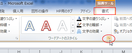 - ワードアートのスタイル グループにある ダイアログボックス起動ツールをクリックします。
