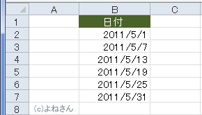 - 20110501 のように日付を数値で入力されているものがあったりします。