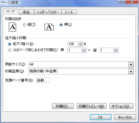 この画面の右下にある[ページ設定]をクリックするとダイアログボックスを開くこともできます。