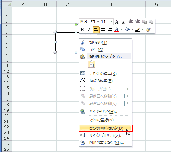 - 変更した図形を右クリックし「既定の図形に設定」を実行します。