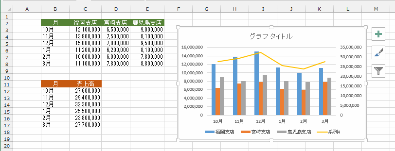 系列「福岡支店」〜「鹿児島支店」は「集合縦棒」にします。