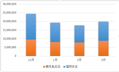 - 積み上げの順番が「鹿児島支店」「福岡支店」の順番に変わりました。