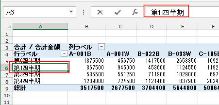 - 「第1四半期」を選択して、数式バーで「第0四半期」と書き換えます。