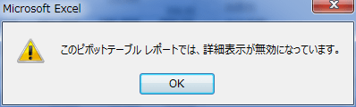 - セルをダブルクリックしたり、右クリックメニューの[詳細の表示]を実行すると、下図の警告が表示されます。