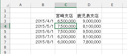 - グラフにするデータリスト内のセルを選択します。