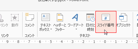 この方はでスライド番号を表示する方法と同じ操作手順です。