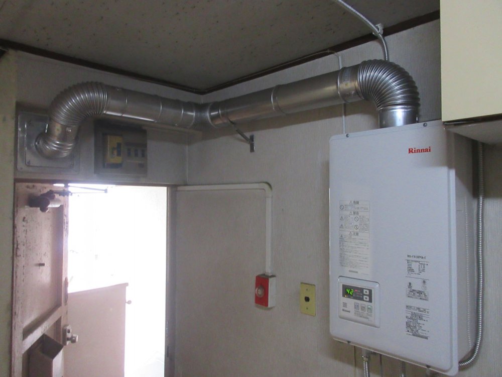 賃貸マンションの風呂釜取替(CF風呂釜 → ホールインワン浴槽とFF給湯器の設置)
