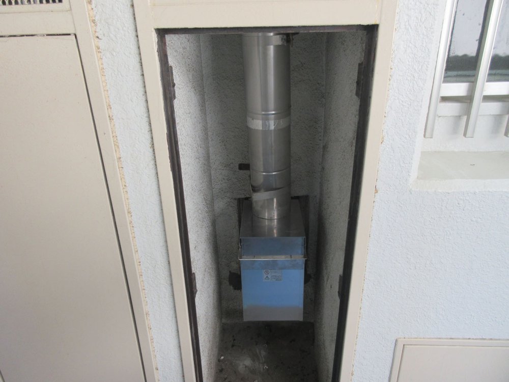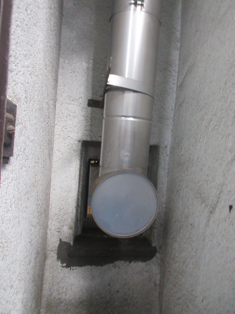 バランス釜の排気トップ (通路側) |