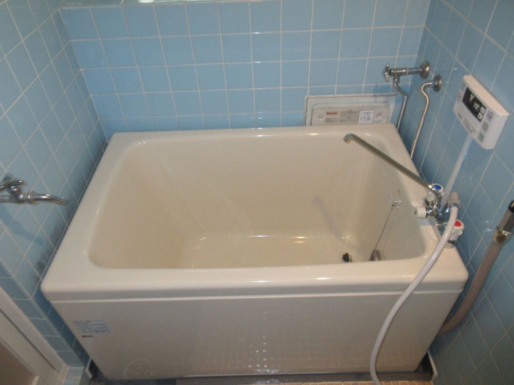 賃貸マンションの風呂釜取替(BF風呂釜 → ホールインワン浴槽と給湯器の設置)
