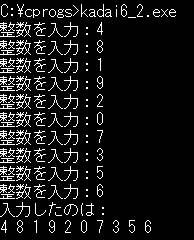 2. ユーザに整数を10個入力してもらい、それを表示するプログラムを書いてください。