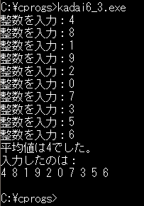 3. ユーザに整数を10個入力してもらい、その平均を求め、平均とユーザが入力した数値を表示する