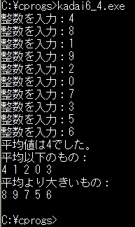 4. ユーザに整数を10個入力してもらい、その平均を求め、ユーザが入力した数で平均以下のものと