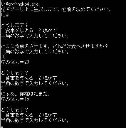 Neko kai_neko(temp); //飼い猫の生成 名はユーザがtempに入力したもの