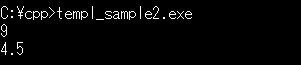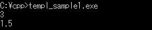 これは、引数の3倍を戻す(グローバル)関数のテンプレートです。Tはあとで決められる型ですが、これもクラステンプレートのときのように、<>で指定することができます。この関数テンプレートを使うサンプルが次のように書けます。