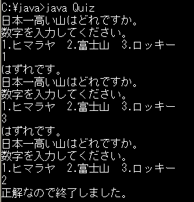 Fig.4 Quizの実行画面(終了がそっけない...)
