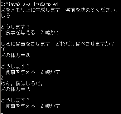 Inu kai_inu = new Inu(s); //飼い犬の生成 名はユーザがsに入力したもの