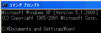 次に、コマンドプロンプト(MS-DOSプロンプト)を開いてください。Windows XPなら、「スタートボタン」から「すべてのプログラム」「アクセサリ」「コマンドプロンプト」で、黒い窓が開きます。