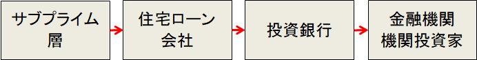住宅ローン会社は、サブプライム層に貸した返済金を求める権利を投資銀行に売っていました。