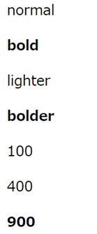 | bold | 太字です。数値では700です。 |